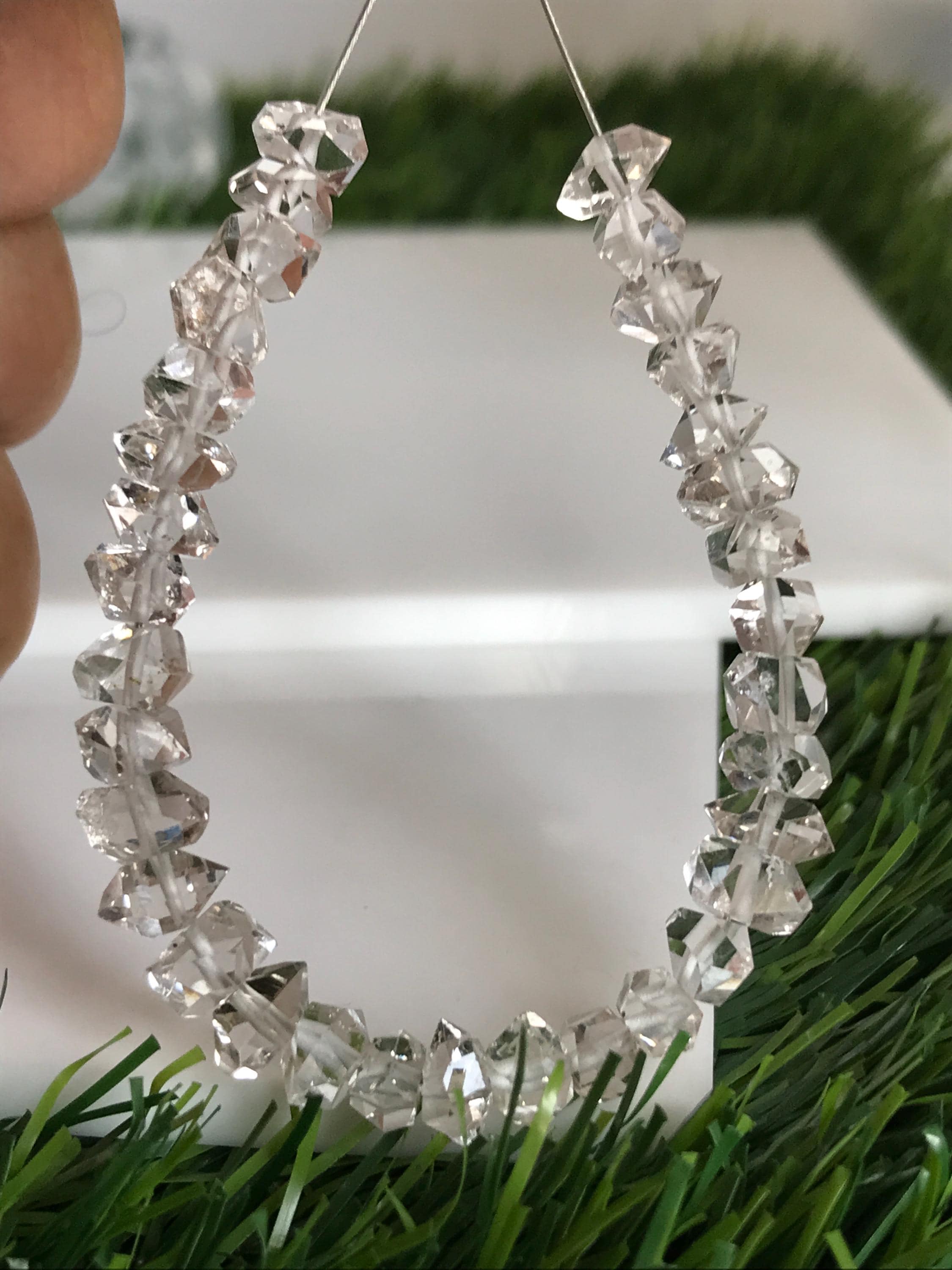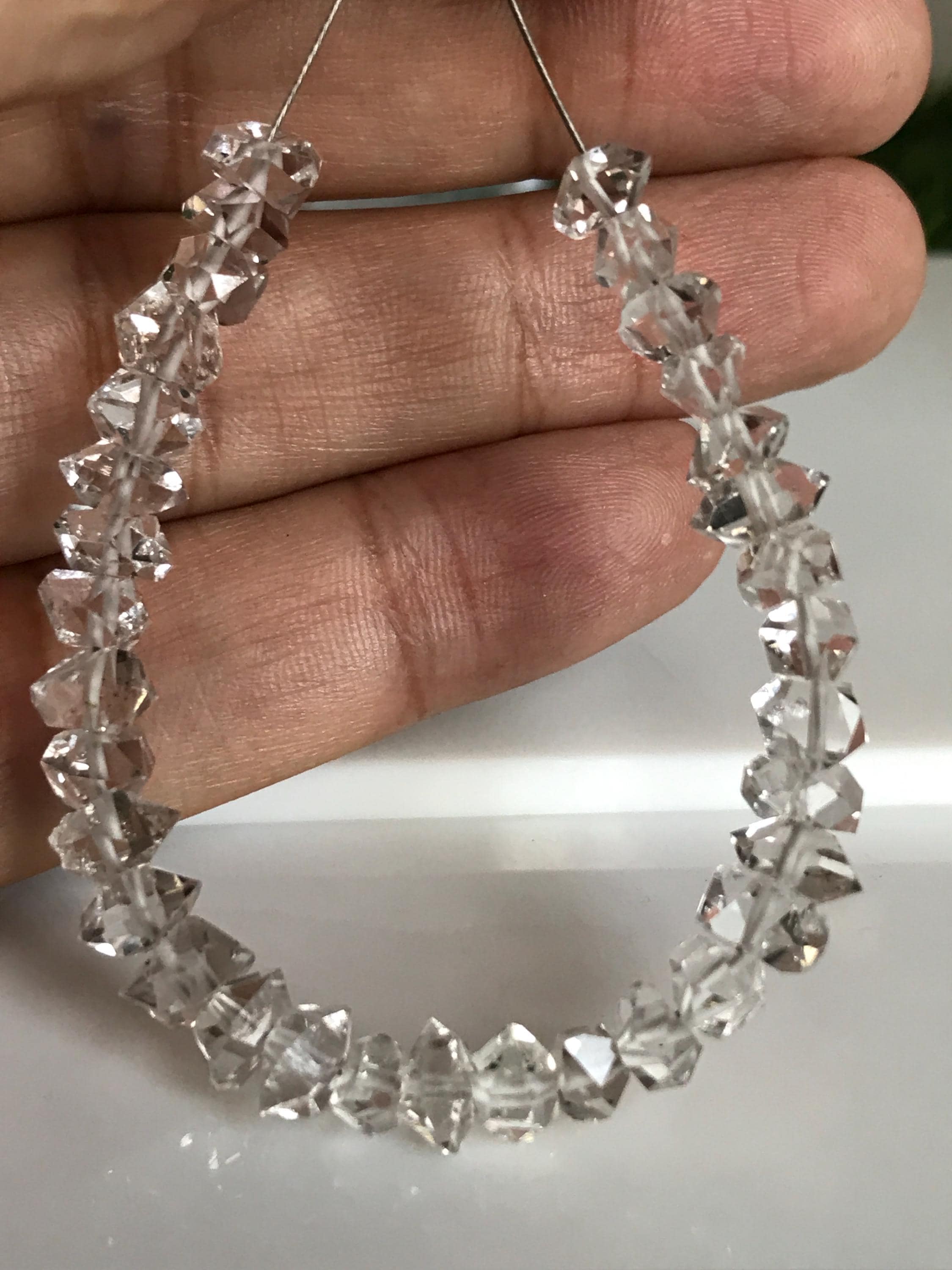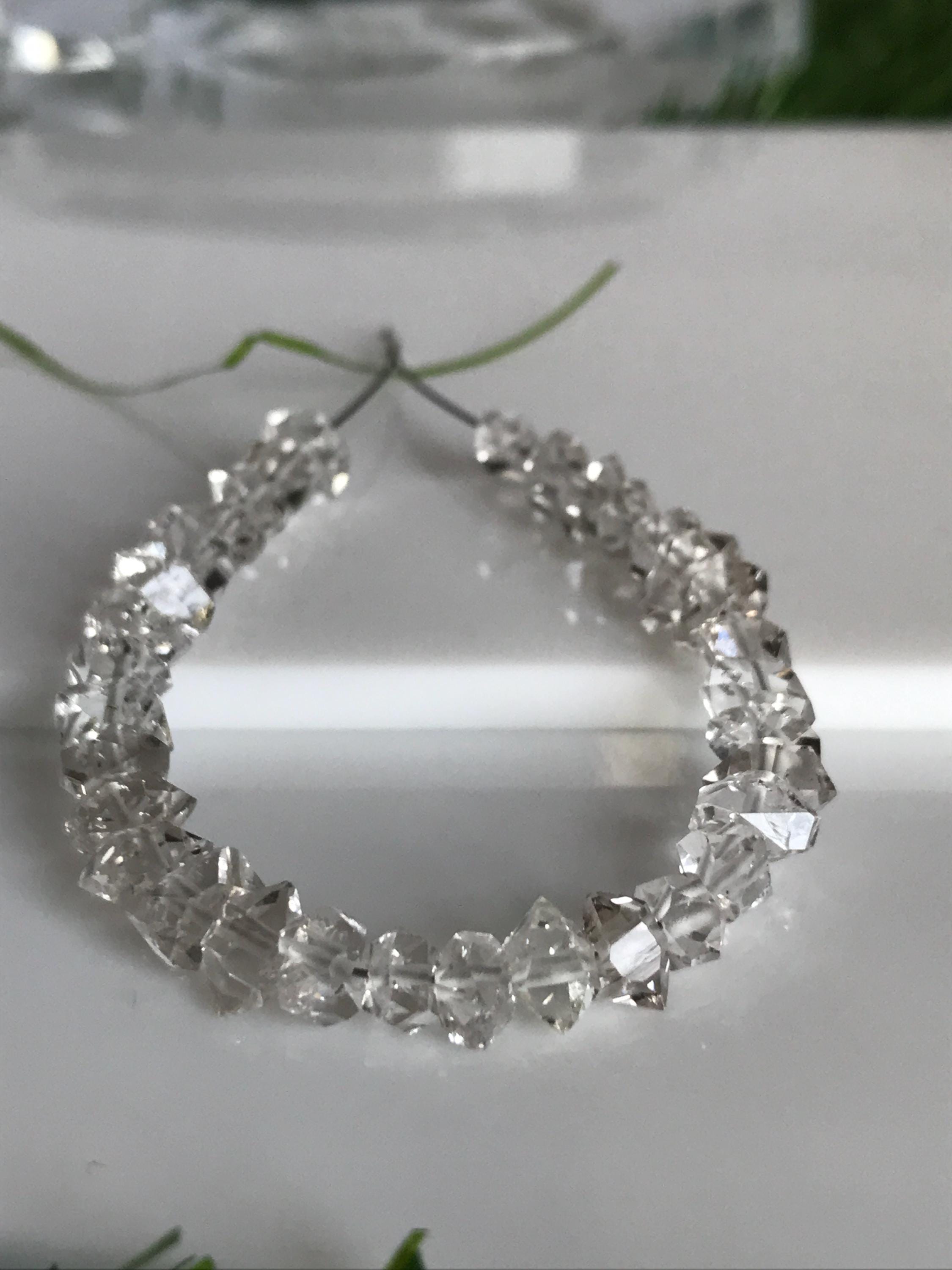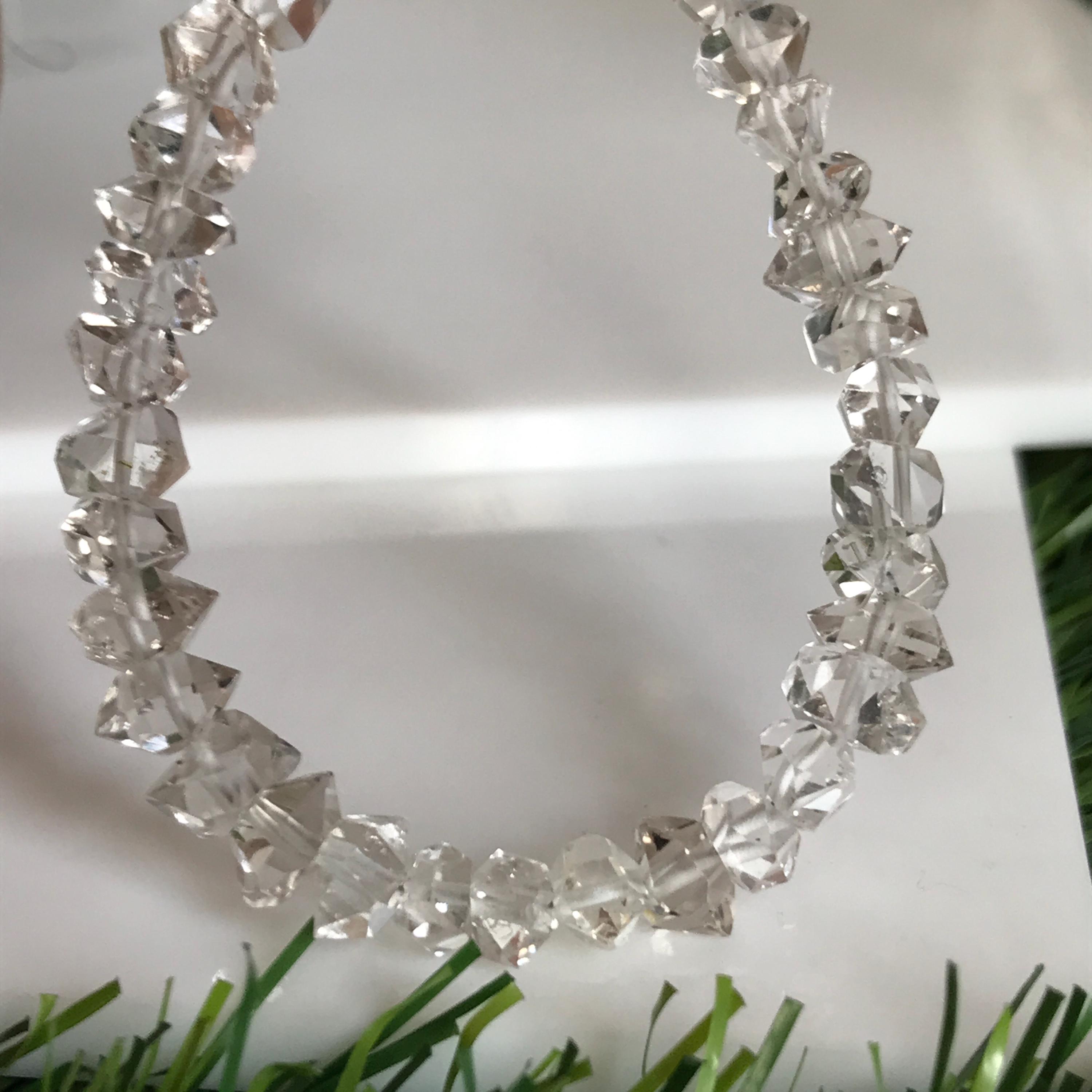 Herkimer diamonds are double-terminated quartz crystals discovered within exposed outcrops of dolomite in and around Herkimer County, New York and the Mohawk River Valley. Not actually diamonds, the "diamond" in their name is due to both their clarity and natural faceting - crystals possess double termination points. Because the first discovery sites were in the village of Middleville and in the city of Little Falls, respectively, the crystal is also known as a Middleville diamond or a Little Falls diamond