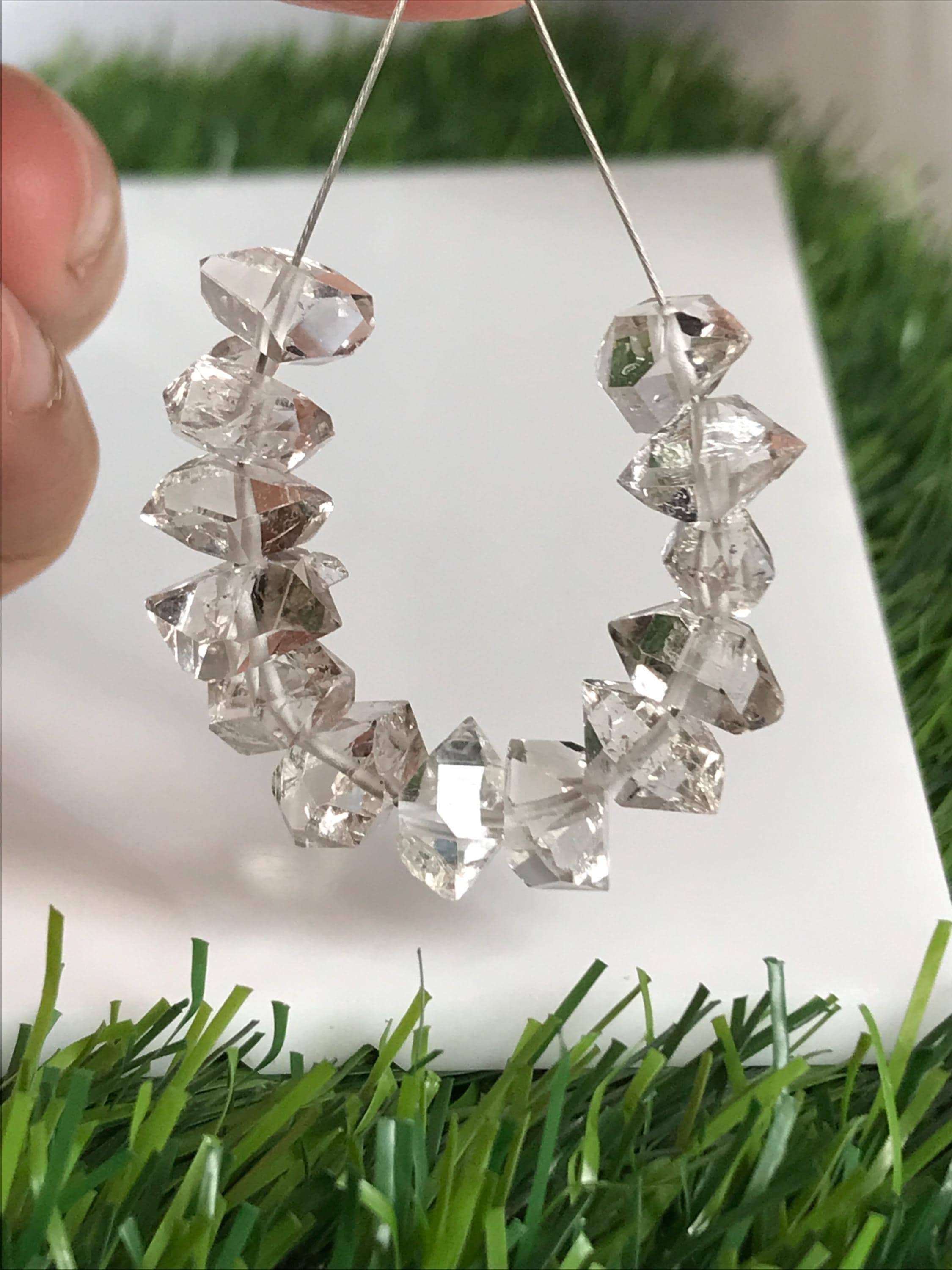Herkimer diamonds are double-terminated quartz crystals discovered within exposed outcrops of dolomite in and around Herkimer County, New York and the Mohawk River Valley. Not actually diamonds, the "diamond" in their name is due to both their clarity and natural faceting - crystals possess double termination points. Because the first discovery sites were in the village of Middleville and in the city of Little Falls, respectively, the crystal is also known as a Middleville diamond or a Little Falls diamond