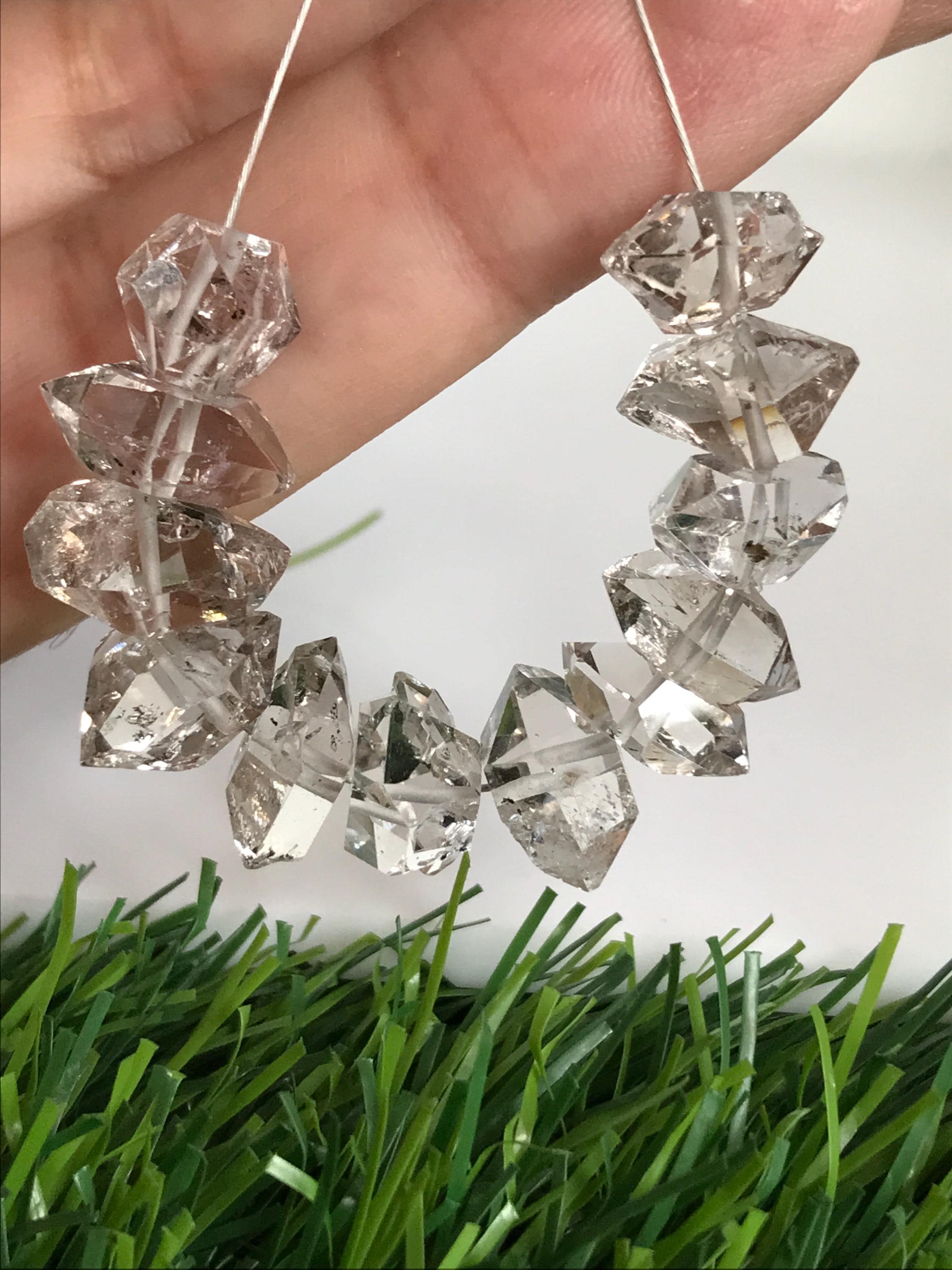 Herkimer diamonds are double-terminated quartz crystals discovered within exposed outcrops of dolomite in and around Herkimer County, New York and the Mohawk River Valley. Not actually diamonds, the "diamond" in their name is due to both their clarity and natural faceting - crystals possess double termination points. Because the first discovery sites were in the village of Middleville and in the city of Little Falls, respectively, the crystal is also known as a Middleville diamond or a Little Falls diamond
